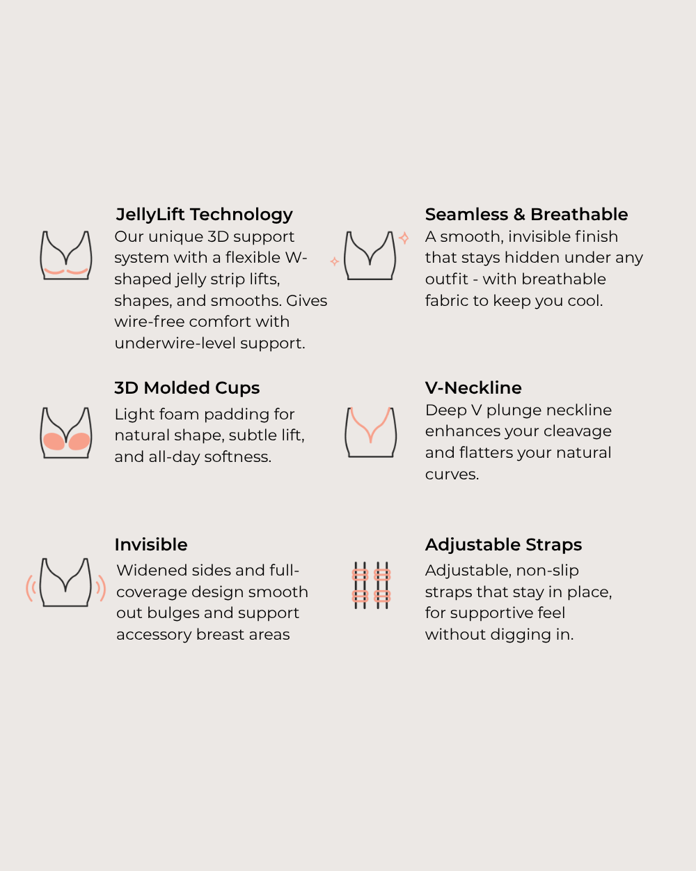 Featuring innovative Jelly Technology for 360° support and natural shaping — without the digging or discomfort of traditional underwires.