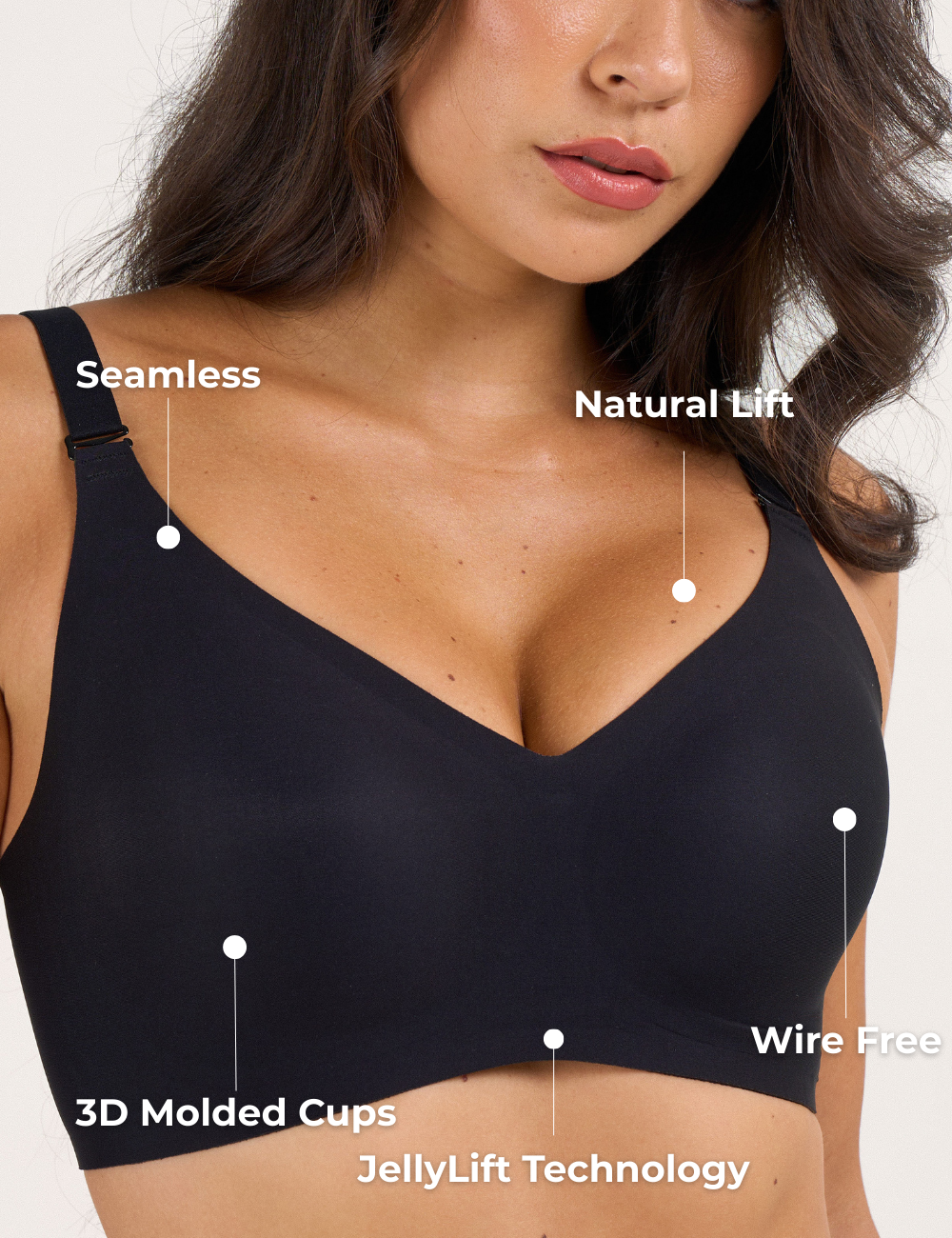 Featuring innovative Jelly Technology for 360° support and natural shaping — without the digging or discomfort of traditional underwires.