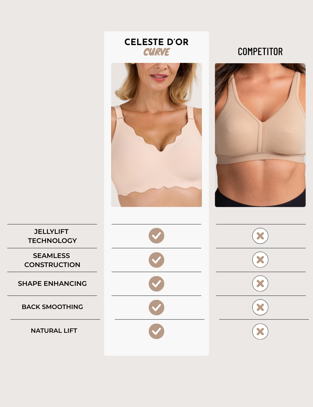 Featuring innovative Jelly Technology for 360° support and natural shaping — without the digging or discomfort of traditional underwires.