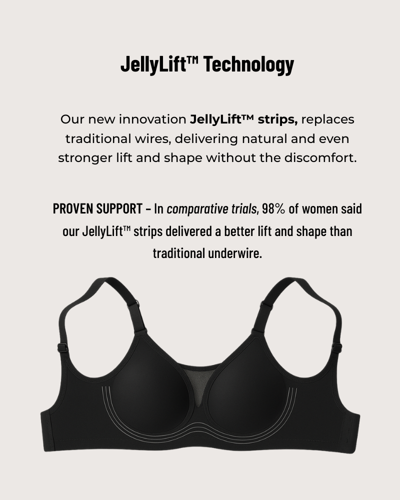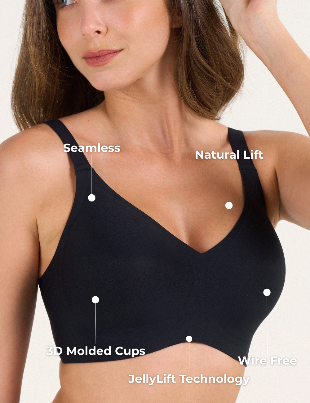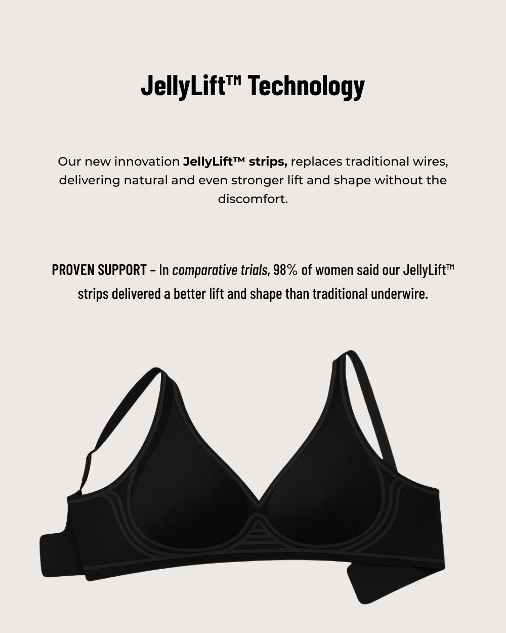 Featuring innovative Jelly Technology for 360° support and natural shaping — without the digging or discomfort of traditional underwires.