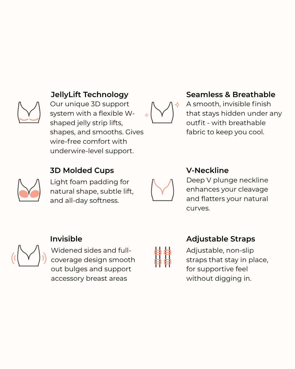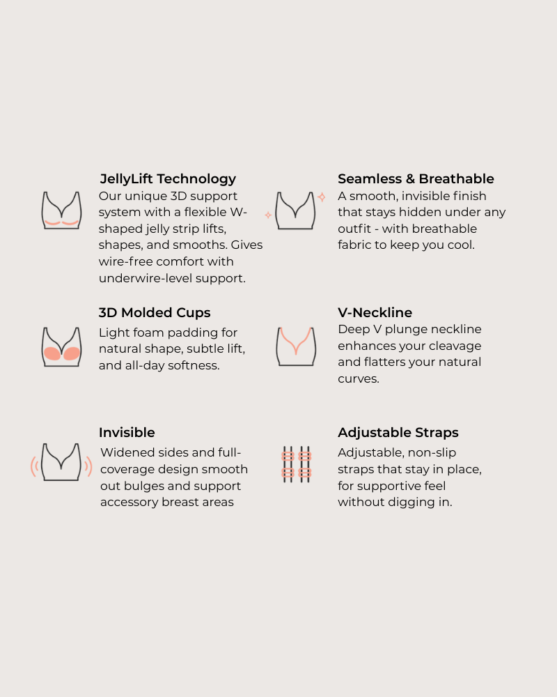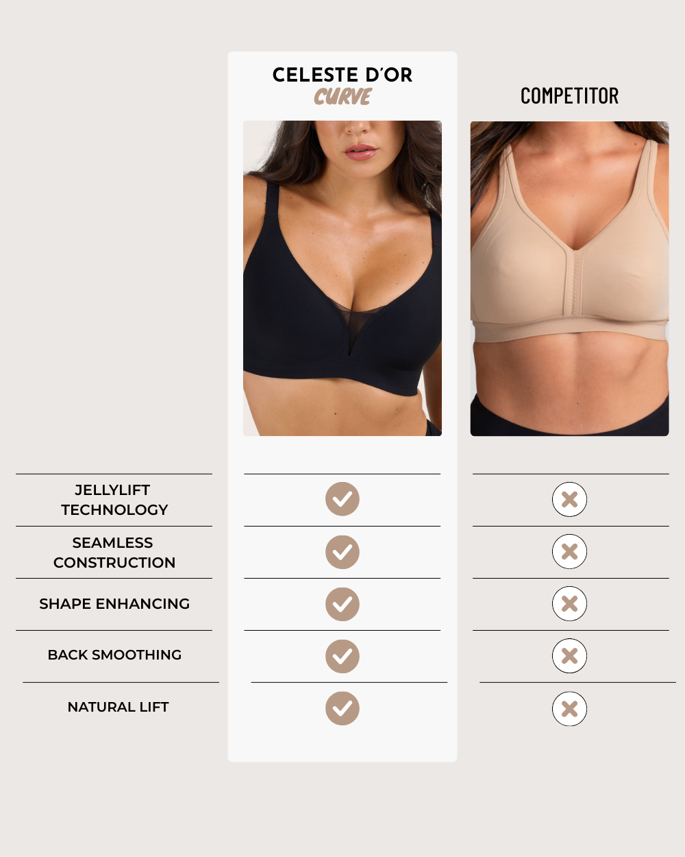Featuring innovative Jelly Technology for 360° support and natural shaping — without the digging or discomfort of traditional underwires.