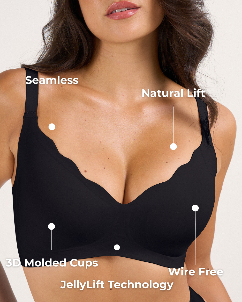 Scalloped Deep V Push-Up Seamless Wireless Jelly Bra